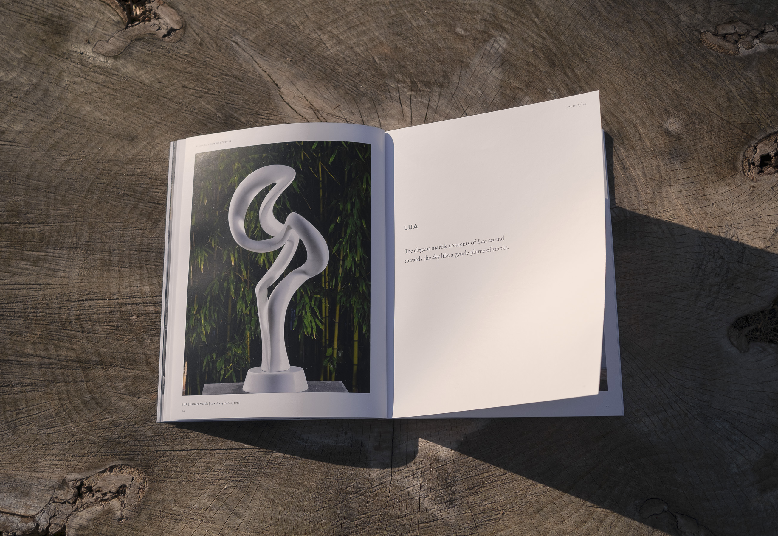 We focused on letting Richard’s sculptures speak for themselves through grided layouts to contrast the organic nature of his work. Only supplementing with careful, succinct typography and rare ornamentation.